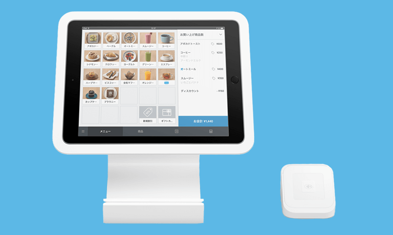 Squareは、スマートフォンまたはタブレット端末さえあれば無料で利用できるPOSレジです。商品や在庫の管理だけでなく、売上分析など商売に必要な一通りの機能を備え、アプリをダウンロードするだけで利用できます。また、クレジットカードリーダーと一緒に使えば、手頃な手数料でクレジットカード決済も受け付けることができます。